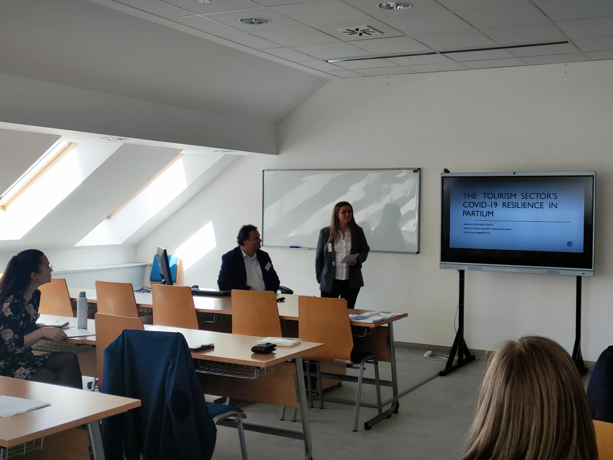 Held at the SRIS International Conference (Sustainability and Resilience International Scientific Conference) hosted by the Hungarian University of Agriculture and Life Sciences (MATE) in Gyöngyös, the “What next? – The challenges of resilience in tourism” session featured a presentation by Dr. Hajnalka Izsák and Dr. Ferenc Szilágyi. Their research examined how tourism enterprises in the Partium region have bounced back from the pandemic, focusing on the effects of COVID–19 and the Ukraine conflict on local economies. They highlighted how border proximity, thermal resources, and mountainous destinations influence regional adaptability.