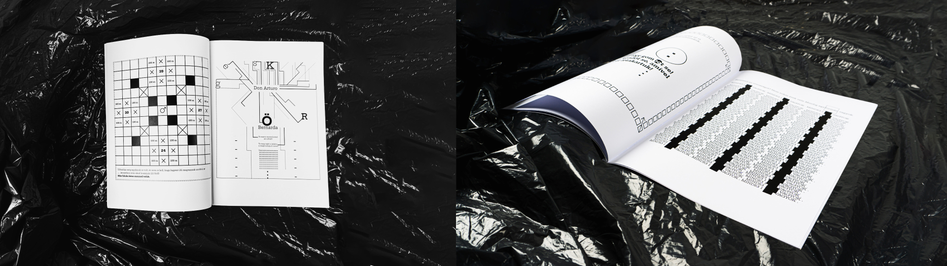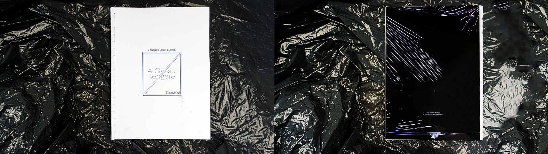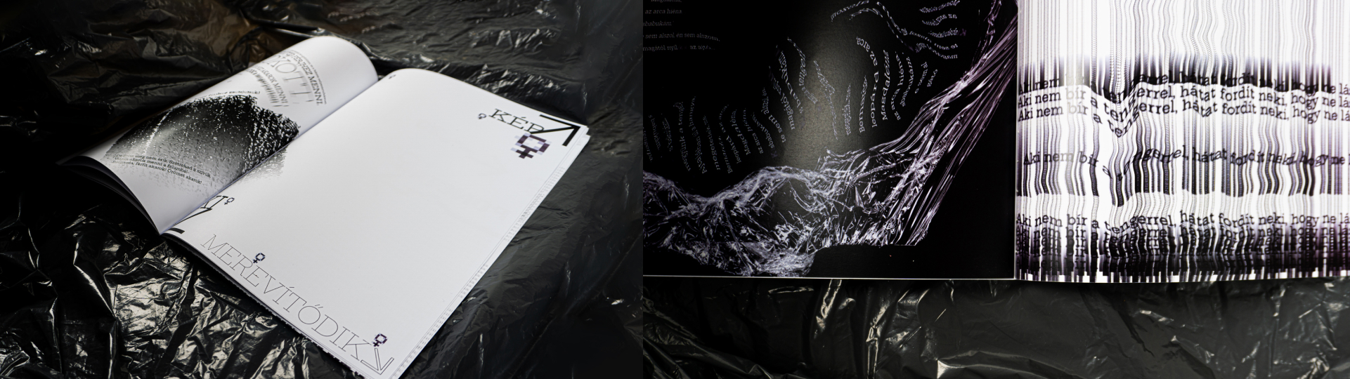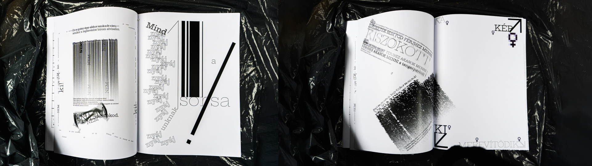 The project "Sea of Grief" is based on the stage play featured in Federico García Lorca’s The House of Bernarda Alba. The aim of the publication is not to illustrate the linear narrative of The House of Bernarda Alba, but rather to give typographic form to the collective and internal dramas of grief, oppression, and female fate. The text unfolds in a way that diverges from traditional reading—through sensory and associative means—where the shape, placement, size, and movement of the letters are as expressive as the linguistic content itself. The publication is packaged in a black garbage bag, symbolizing a discarded, suppressed, or concealed narrative thread. In the rural Spanish reality, grief, desire, and aggression have no place in the public sphere—these emotions are destined to be wrapped up and repressed. In this context, the black bag becomes a visual metaphor for concealment and exclusion.