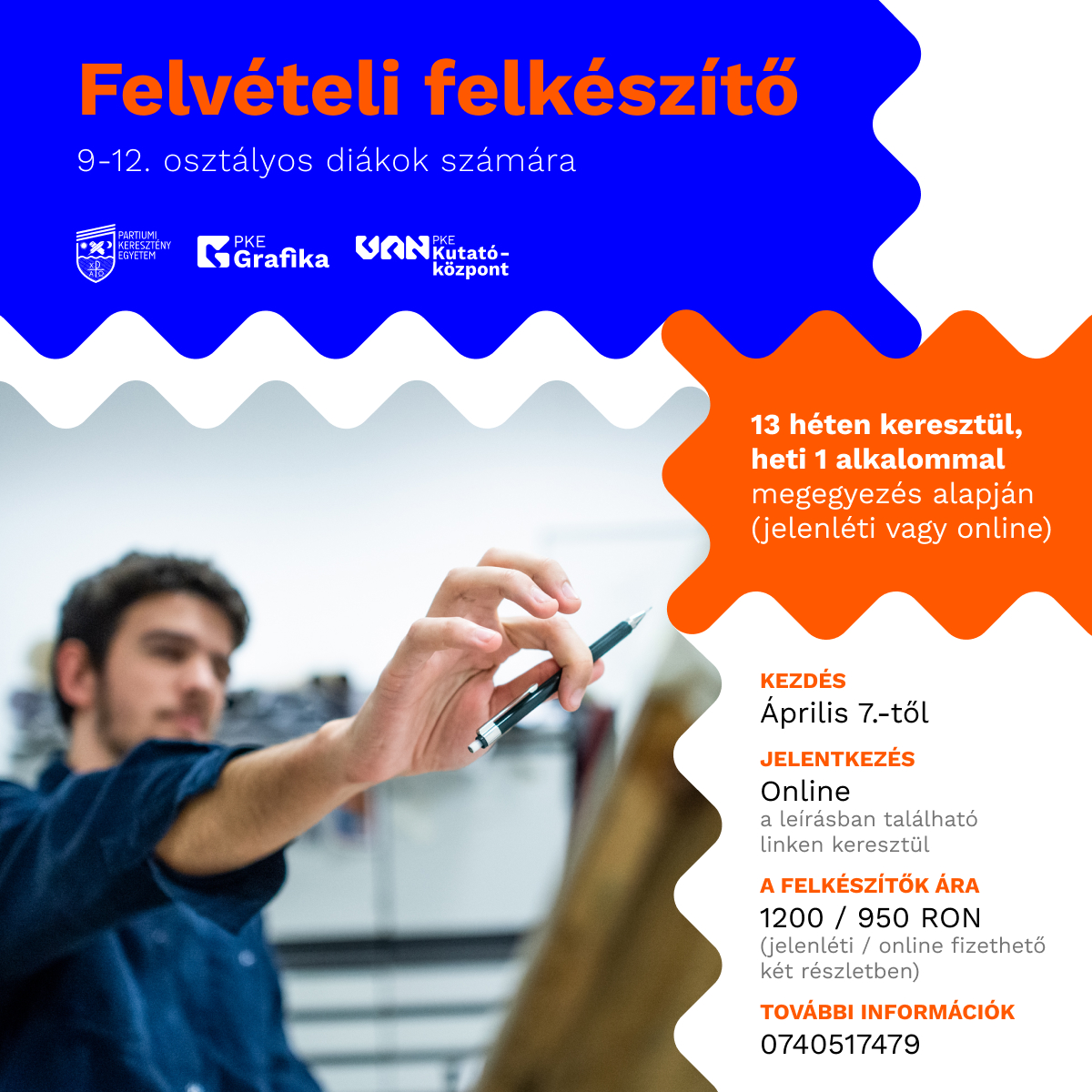 Növeld az esélyed szakmailag az egyetemi bejutásra – akár ösztöndíjas helyre – a PKE művészeti előkészítő programjával! Ha szeretnéd fejleszteni alkotói készségeid a képzőművészet területén, szívesen látunk felkészítő kurzusunkon, művészeti előképzettségtől függetlenül. Esélyt szeretnénk adni azok számára is, akik távolabb élnek, így a felkészítőn online is részt lehet venni. Kor: 9–12. osztály (vagy idősebb)