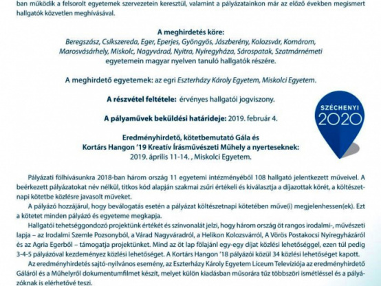 A pályázat műveiből költészetnapra megjelenő válogatott kötetben az alábbi hallgatóink írásait ítélték megjelenésre méltónak a bírálók: Kulcsár Edmond Mihaly, Magyar nyelv és irodalom-angol nyelv és irodalom 2 év Vad-Magyar Renáta-Henrietta, Magyar nyelv és irodalom 3 év Gagyi Judit-Eszter, Vizuális kommunikáció magiszterképző 1 év Páll András, Zeneművészet az audiovizuális kultúrában magiszterképző 1 év Gratulálunk hallgatóinknak igényes...