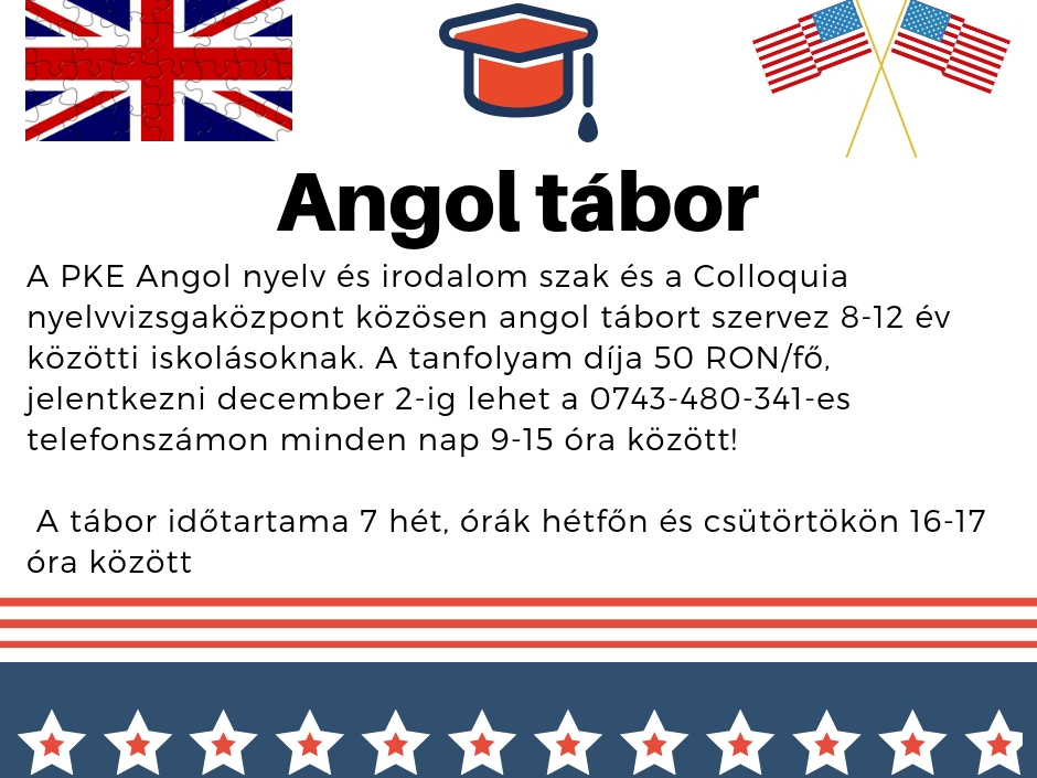Partiumi Keresztény Egyetem, Bölcsészettudományi és Művészeti Kar, Nyelv és Irodalomtudományi Tanszék. Hírek, Angol tábor a PKE-n 8-12 éves gyerekeknek!!!. Bemutatás, képzések, oktatók, kutatás, dokumentumok, alumni, események, keresés.