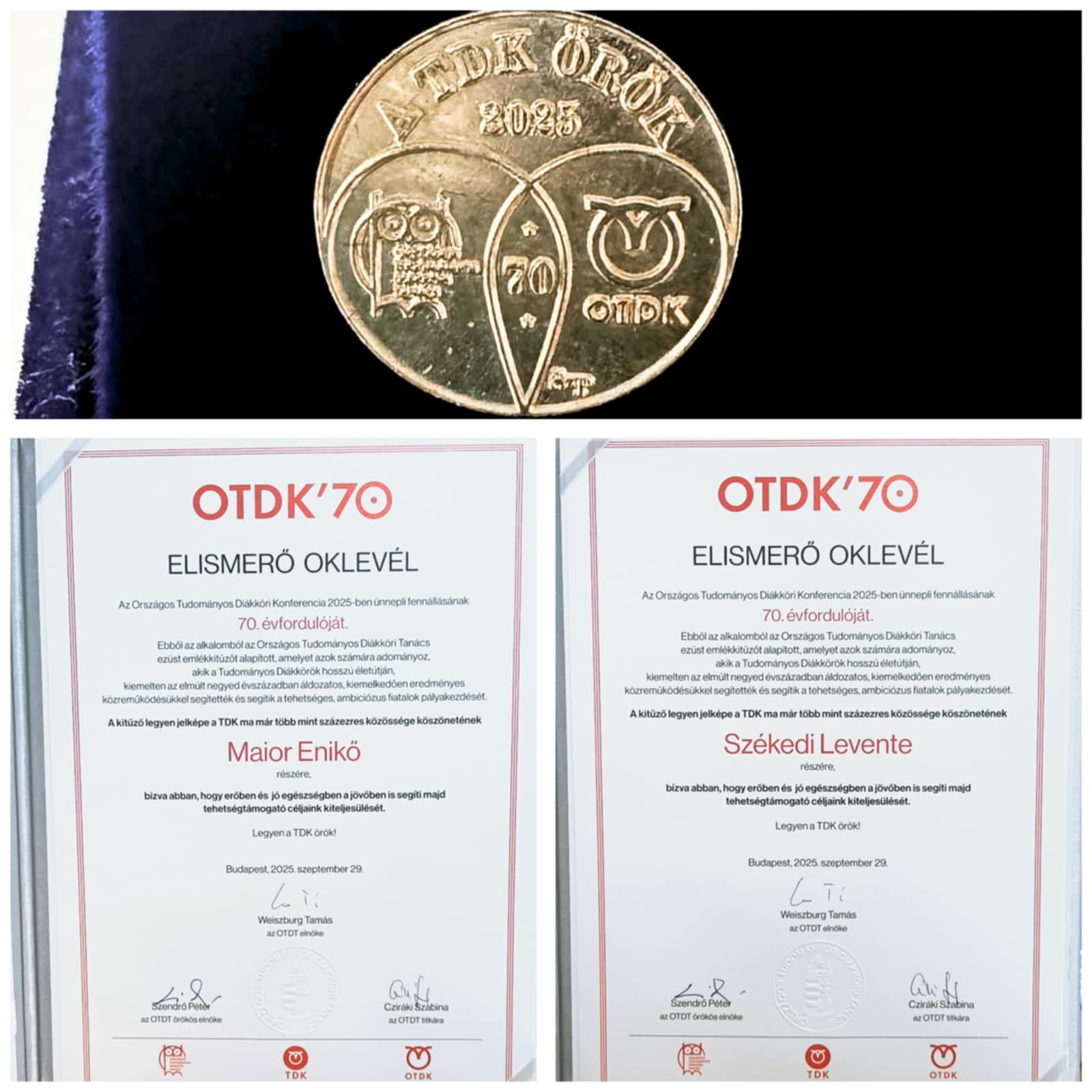Az OTDK alapításának 70. évfordulóján több, a tehetséggondozást aktív munkával támogató oktató részesült elismerésben. Az „OTDK70 Kitűzőt” olyan magyarországi és határon túli, a felsőoktatásban tevékenykedő szakemberek kapták, akiknek értékes és elkötelezett munkája hozzájárult az OTDK és a diákköri konferenciák értékeinek erősítéséhez és megőrzéséhez.