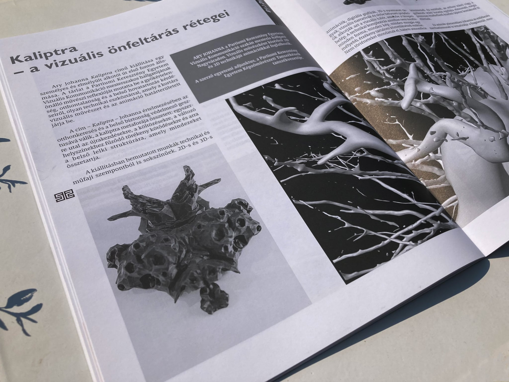 Ary Johanna Vizuális kommunikáció mesterszakos hallgatónk egyéni kiállításáról a Művészeti Tanszék vezetője és a kiállítás kurátora, Balázs Zoltán írt a Újvárad kulturális folyóiratban. A kiállításon bemutatott munkák technikai és műfaji szempontból 2D és 3D animációk, digitális grafikák, 3D-s nyomtatott tárgyak, vizuális narratívák és térben elhelyezett projekciók alkotják.