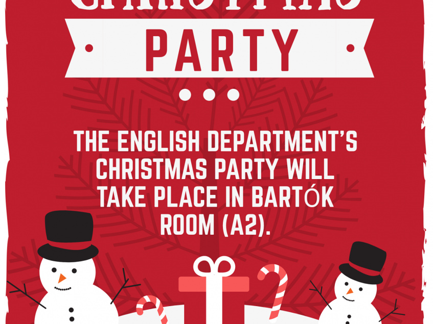 Please join us in celebrating our Christmas party on Wednesday, December 19, 2017 at 18.00 in the evening! Venue: Bartók Room Organizers: the English Majors