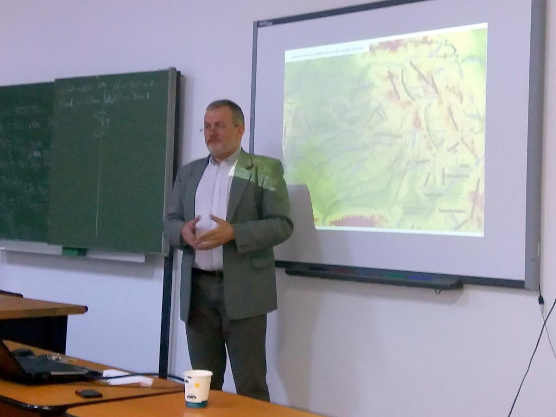 Dr. Elekes Tibor geográfus, turisztikai szakember, idegenvezető látogatása során több szakon is színvonalas prezentációt tartott. A Vállalkozások fejlesztésének menedzsmentje magiszteri képzés keretében a helyi erőforrások és a régiófejlesztés összefüggéseit mutatta be a Székelyföld példáján. Az interaktív bemutató keretében a hallgatóság első kézből ismerhette meg a szerző bemutatásában azokat a nagyértékű térképszelvényeket, amelyek a nemrég megjelent három kötetes, Székelyföld története (Egyed Ákos főszerk.) címet viselő monográfiának a szerves részét képezik.