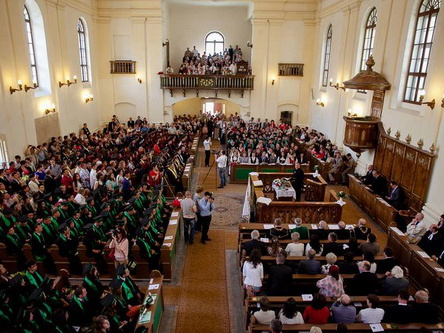Ezt követően a ballagók egyetemünk elnökének, Tőkés Lászlónak, illetve János-Szatmári Szabolcs rektor úrnak a vezetésével átvonultak a nagyvárad-újvárosi református templomba, ahol az egyetemi oktatók, valamint a szülők, rokonok és ismerősök közösségében, ünnepélyes keretek között intettek búcsút egyetemi éveiknek.