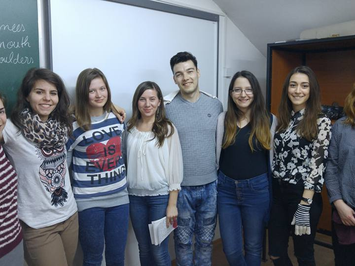 Then Mondays from 6 pm to 8 pm Shakespeare room is the place to come to. English Language Teaching seminar. Where everything is possible: (shy) students become in charge of about 15 people and boss them around, 20 year-olds turn into 4th graders (or more or less) and behave accordingly – though no one has asked the “kicsitajntónéni” (teacher trainee)the ominous “Ezt mi isírjuk?”…YET. This is the place where one learns the trick of standing at and writing on the blackboard while still paying attention to what’s going on in the class, where one can show off one’s drawing skills, where one learns that “Do you understand?” is not a question (to be asked from anybody if one wants a real answer), where one learns “sandwich-talk” (Open your notebook – nyisd ki a füzetedet – open your notebook). It is definitely a step out of one’s comfort zone. Especially, when one is micro-teaching and is in charge of the whole group for about 20 minutes. To many of them it is the first time they have to persuade others to pay attention to them, to teach people a song/words/to read/to write in English. But they make it…with flying honours. The smile on their faces, the rounds of applause, the lively discussion following these micro-teachings show it. Life is OK out of the comfort zone as well. :) Hats off to all you teacher trainee girls and boys!