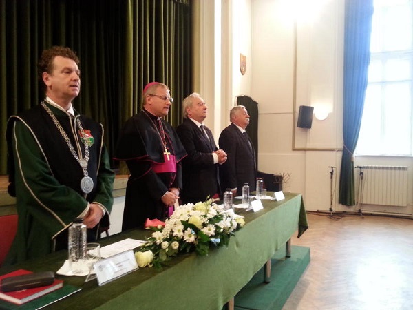 Dr. Pálfi József rektor optimizmusának adott hangot: a tavalyi biztató kezdet után sikeres tanévet zártak, s van okuk a reménységre. Fontos, hogy a magyar Kárpát-haza ütközőzónáján végzett szolgálatával az egyetem nemzet- és országépítő feladatát ellássa, hiszen látjuk a korszakunkat alkotó európai és világfolyamatokat, azt, hogy századunk első évtizedei nem a legpozitívabban indultak. Többek között szólt a Renaud Camus által megfogalmazott felcserélés-elméletről, mely szerint mindent helyettesíteni lehet valami mással, igazat a hamissággal, természetest a mesterségessel, férfit a nővel, emberiséget bárgyú posztemberiséggel. A nép, a nemzet, a család fogalma túlélte a totalitárius ideológiát, de nem tudni, mi marad meg a szekularizáló materializmus nyomán, amely alapján ha valaki kiáll nemzeti identitása mellett, akkor nacionalistának, maradinak számít. A PKE küldetése a keresztény és nemzeti ideológiához kötődik, e lokális és globális világban nem keseregve, hanem hittel munkálkodva végzi feladatát. Mint elmondta, 246 hallgató tette le sikeresen az államvizsgát, s a most kezdődő tanévre 329 első éves hallgató iratkozott fel, ez húsz százalékos növekedést jelent tavalyhoz képest. Arról is szólt: ingyenes román érettségi felkészítőt tartanak, s új szakok (többek között vidékfejlesztés, agrármérnök, humán erőforrás) indítását tervezik. A megerősödés évei ezek a Partiumi Keresztény Egyetem életében, az egyetem képes talpra állni, fejlődni, és minden objektív kihívással szembe tud nézni. Jézus Krisztus azt mondta: „Én tudom, hogy honnan jöttem és hová megyek.” „Legyetek bátrak és hamarosan meg fogjátok tudni honnan jöttök és mi a célotok” – intézte szavait a rektor a hallgatókhoz.