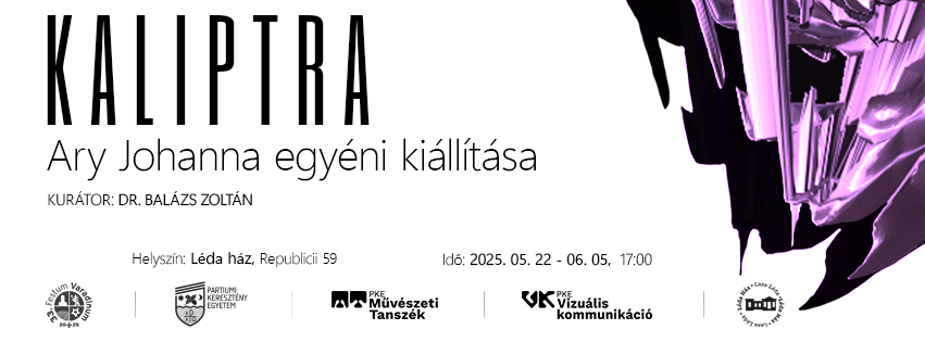 Ary Johanna, vizuális művész Kaliptra című kiállítása egy 2D és 3D technikákkal vegyített kísérleti animációkból és grafikákból álló tárlat, témája a gyökértelenség, otthontalanság gondolata. Johanna jelenleg hallgató Vizuális Kommunikáció mesterszakunkon.