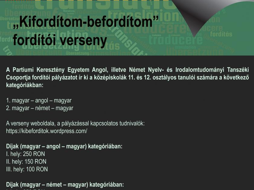 Döntő és díjazás az egyetem nagyváradi székhelyén (Városháza utca 27 szám): 2017. április 11.