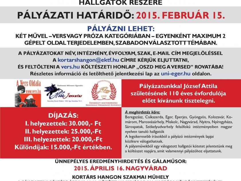 XI. MEGHÍVÁSOS NEMZETKÖZI IRODALMI PÁLYÁZAT HALLGATÓK RÉSZÉRE