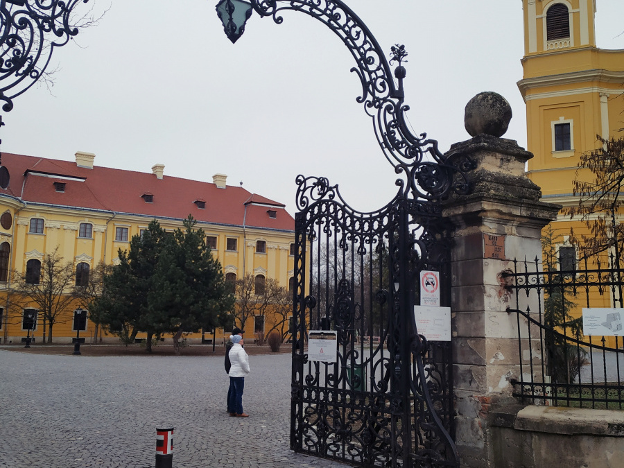 Egy kora márciusi vasárnap délután indultunk el a székesegyházat és a püspöki palotát megtekinteni. A bejáratnál megcsodáltuk a monumentális kovácsoltvasból készült kaput. Majd beléptünk az nemrég felújított barokk parkba. Először a püspöki palotát jártuk körül, amelynek rengeteg ablaka van. A néphit úgy tartja, hogy az épületnek a külső ablakai az év napjaira emlékeztetnek. A templom előtt megtekintettük Szent László szobrát, mely eredetileg a főtéren állt. A szoborhoz közel látható egy másik kisebb méretű Szent László szobor is, amely egyben Nagyvárad legrégebbi barokk kőszobra is. A szobor egyik érdekessége, hogy 52 évig a föld alatt rejtegették, csupán 2000 után került a jelenlegi helyére. A legenda úgy tartja, hogy Szent Lászlót az egykori Váradi Várban álló templomban temették el, ezért nagy ünnepek alkalmával körmenetet tartanak Szent László hermájával. Ez az aranyozott ezüst mellszobor őrzi a király koponyájának egy darabját, híven követve Szent László arcvonásait.