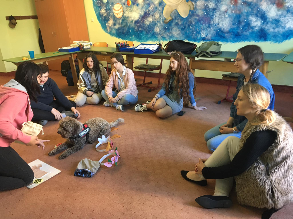 Kutyaterápiás foglalkozáson a Bonitas Speciális Oktatási Központban