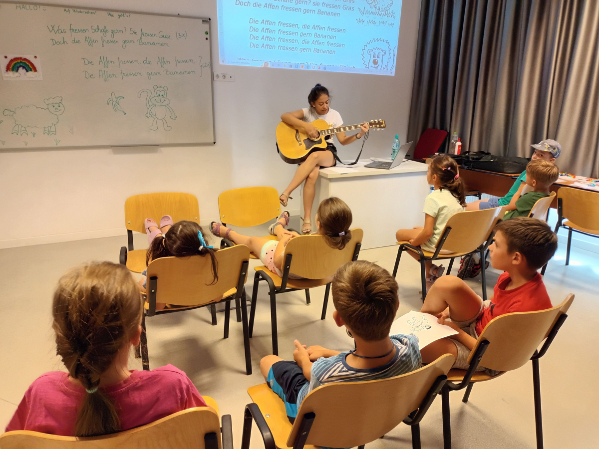A csoportbontás kialakításánál a korosztályt és a nyelvi szintet egyaránt figyelembe vettük. Csoporton belül pedig alkalmazkodunk az egyéni tanulási stílusokhoz. A német nyelv ismerete ezért nem volt feltétele a táborba való jelentkezésnek. Cselekvésközpontúan, élménygazdagon és interdiszciplinárisan: eljátszottuk, elénekeltük, megrajzoltuk, megalkottuk mindazt, amit a tematikus napokon megtanítottunk, tettük ezt kézzel, fejjel, szívvel.
