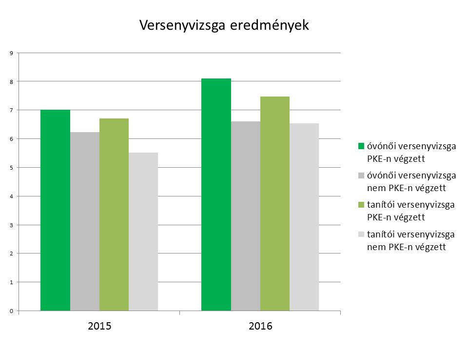 Mindazoknak, akik a számoknak hisznek, amikor eredményességről beszélünk: a tavalyi és az idei év tanítói és óvónői versenyvizsga-eredményei világosan jelzik a PKE-n végzett hallgatók felkészültségét. Mindkét szakterületen végzett Óvó- és tanítóképzős hallgatóink vizsgaeredményei átlagosan egy ponttal jobbak, mint a többi Bihar megyei vizsgázóé, sőt az idei óvónői versenyvizsga eredmények 1,5 pontos különbséget mutatnak a mieink javára (T-teszt = 2,03 *** - igen, szignifikáns külünbségről van szó!). De ha csak sorrendet nézünk, akkor is szembetűnő, hogy mindkét szakterületen a legjobb eredményt PKE-s hallgató érte el, s az első 5-ből 4-en PKE-sek.