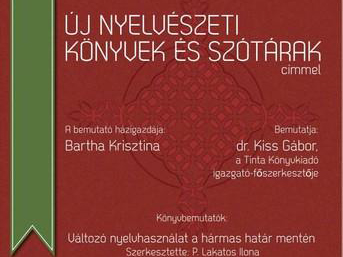 Délután 14 órától, a Partiumi Keresztény Egyetem Bartók termében a PKE Magyar Nyelv és Irodalom szakának vendégoktatója, P. Lakatos Ilona, Változó nyelvhasználat a hármas határ mentén című könyvét mutatja be dr. Kiss Gábor kiadóigazgató-főszerkesztő, majd pedig a Magyar Nyelv Kézikönyvei, az Ékesszólás Kiskönyvtára valamint a Segédkönyvek a Nyelvészet Tanulmányozásához című könyvsorozatok újdonságaival ismerteti meg a közönséget. A rendezvény házigazdája Bartha Krisztina nyelvész, egyetemi oktató. A Tinta Kiadó könyvei déltől kora estig kedvezményes, kiadói áron vásárolhatóak meg a Partiumi Keresztény Egyetem épületének előcsarnokában.