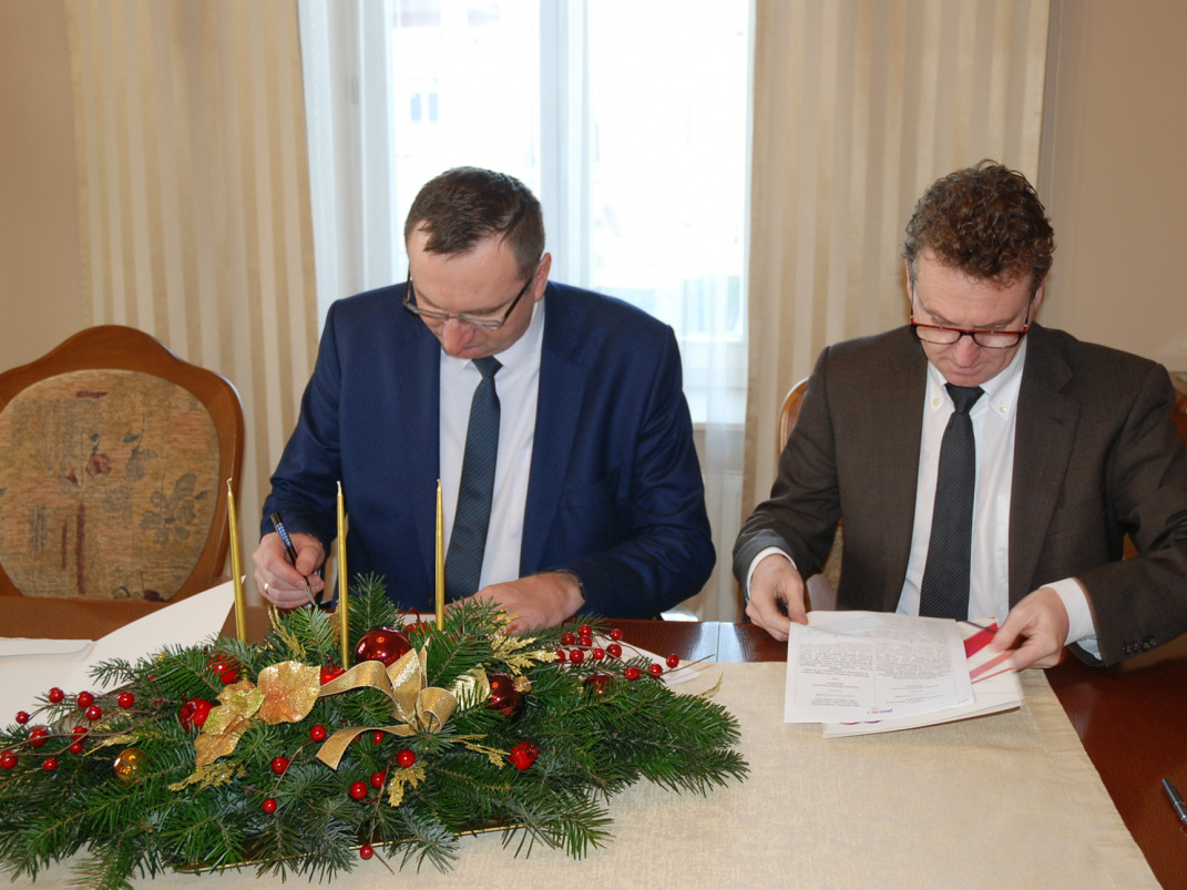 Együttműködési szerződést írt alá december 12-én Lengyelországban a nagyváradi Partiumi Keresztény Egyetem rektora, dr. Pálfi József és a jaroslaw-i Bronislaw Markiewicz Egyetem rektora, dr. Krzysztof Rejman (Bronislaw Markiewicz State Higher School