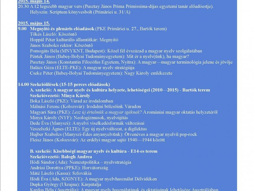 Az 1970-ben indult anyanyelvi konferenciák sorozatát 2015-ben Nagyváradon, Janus Pannonius, Pázmány Péter és Ady Endre városában szervezzük meg.