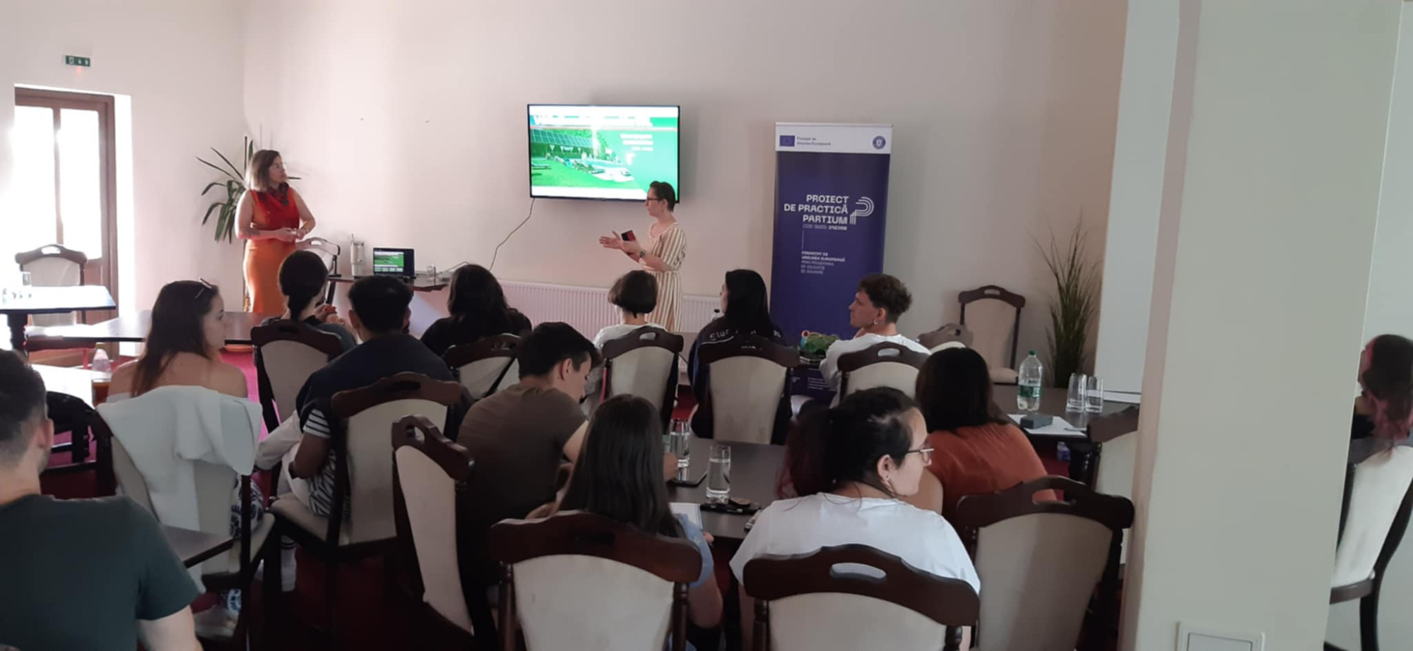 Ziua de sâmbătă a fost dedicată formării intensive. După micul dejun, tinerii au participat la sesiuni de instruire antreprenorială, în care au învățat despre pașii necesari pentru a lansa o afacere, elaborarea unui plan de afaceri și specificul întreprinderilor sociale. Pauzele au oferit oportunități excelente pentru networking și discuții informale. După-amiaza, au avut loc două momente importante: o întâlnire interactivă cu antreprenori locali, care au împărtășit din experiența lor de business, și o prezentare dedicată afacerilor verzi și modelelor sustenabile. Ziua s-a încheiat cu o nouă sesiune de formare și o cină comună.